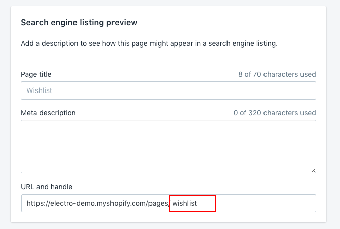 - Go to Online Store > Pages Click Add Page to creat 2 pages: Wishlist; Compare.